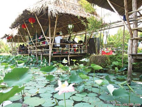 Nước không phải là nước bán trong quán mà là nước chung quanh quán tạo ra một cảnh quan rất miền Tây, rất Đồng Tháp mà lại nằm ngay Sài Gòn. Lý tưởng cho nhiều người chọn nơi này… tị nạn nóng.