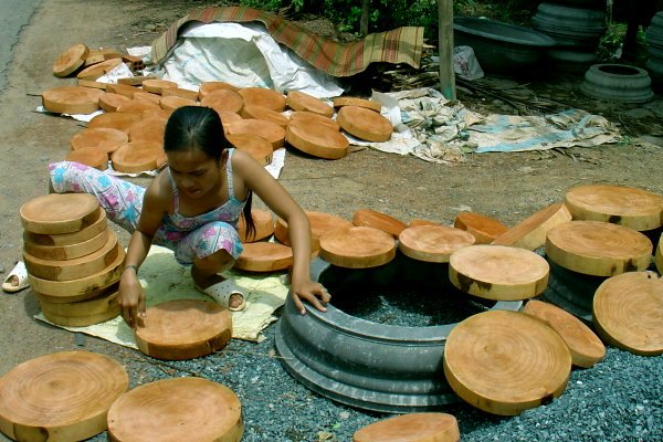 Có dịp đến thăm làng nghề làm thớt, du khách luôn thấy cảnh nhộn nhịp với tiếng cưa, tiếng đục, tiếng vận hành máy. Người kéo xe, kẻ phơi thớt… trông rất đẹp mắt với hơn chục hộ hành nghề dọc theo quốc lộ 54.