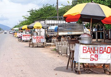 Từ TP.HCM về hướng Bà Rịa - Vũng Tàu, trên khoảng 500m của quốc lộ 51 thuộc địa bàn ấp 3, xã Phước Thái, Long Thành, Đồng Nai, có đến cả trăm quầy bánh bao. Chỉ cần dừng chân là khách được chào mời rôm rả: “Ghé vô mua bánh bao cô bác ơi! Bánh bao 69 nóng hổi vừa thổi vừa ăn”.
