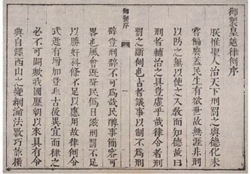 Theo mộc bản, trong bài tựa bộ Hoàng Việt luật lệ, Gia Long viết: “Trẫm nghĩ: Thánh nhân cai trị thiên hạ đều dùng luật pháp để xử tội, dùng đạo đức để giáo hóa mọi người. Hai điều ấy không thể bỏ được điều nào. Thật vậy, sống trong xã hội, con người với những ham muốn vô bờ, nếu không có luật pháp để ngăn ngừa thì không có cách gì để dẫn dắt người ta vào đường giáo hóa mà biết được đạo đức. Cho nên người xưa có nói: “Pháp luật là công cụ giúp cho việc cai trị thêm tốt đẹp”. Lời nói đó há chẳng phải là chuyện không thực đâu”.
