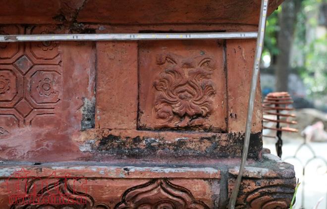 Các hoa văn trên tháp được khắc theo lối Chămpa. Họa tiết và chất liệu của tháp vừa có dáng dấp tháp đình bảng, vừa có nét Chăm Pa, khắc hình cánh sen, chim thần Garuda.