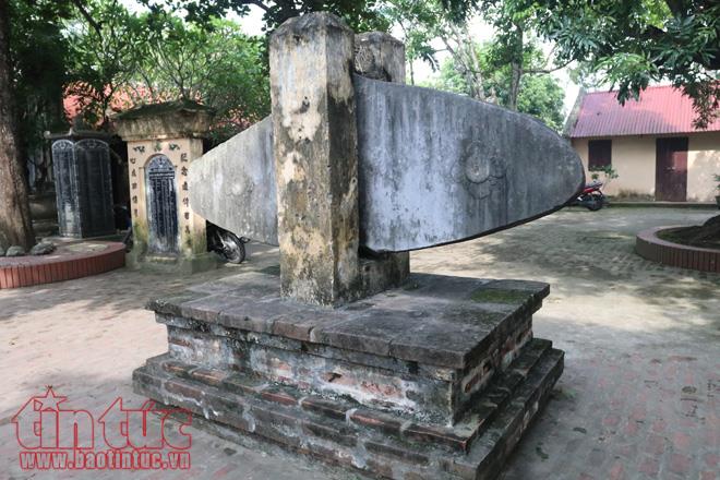 Tại đền Đậu An còn lưu giữ chiếc khánh đá cổ niên hiệu Vĩnh Trị.