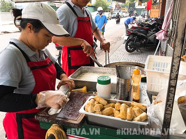 Những chiếc bánh dài thuôn, khi lấy ra còn nóng hôi hổi, mang đi 30 phút sau ăn vẫn thấy vỏ bánh giòn tan.